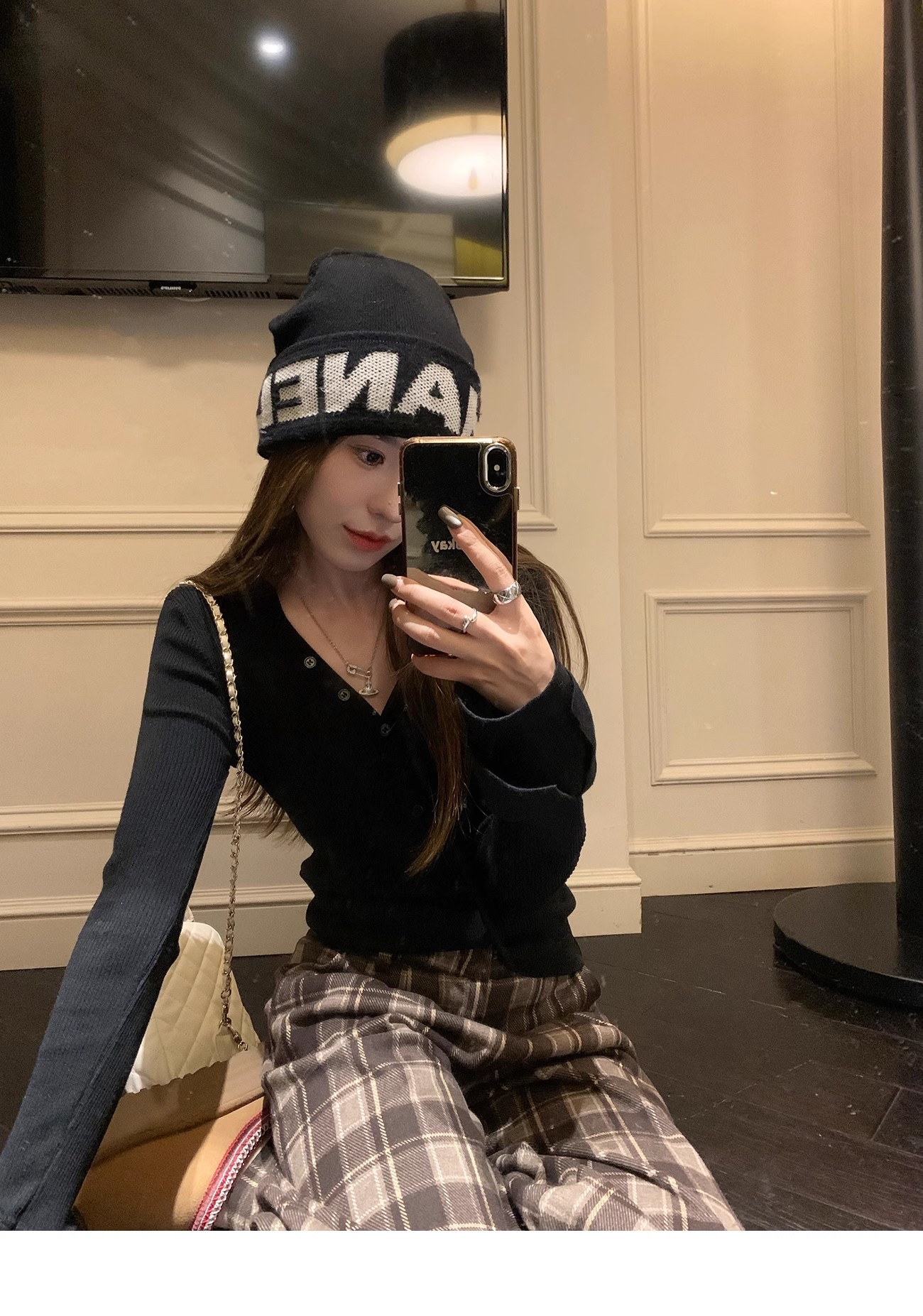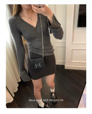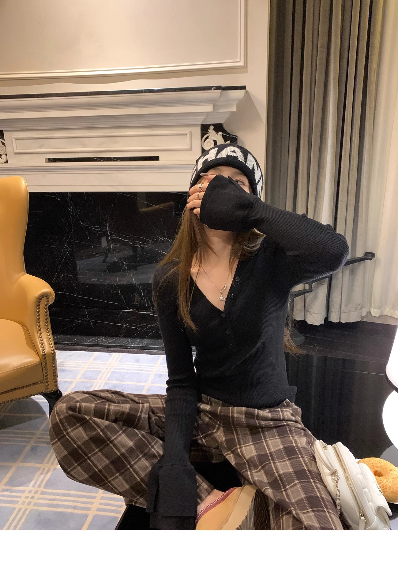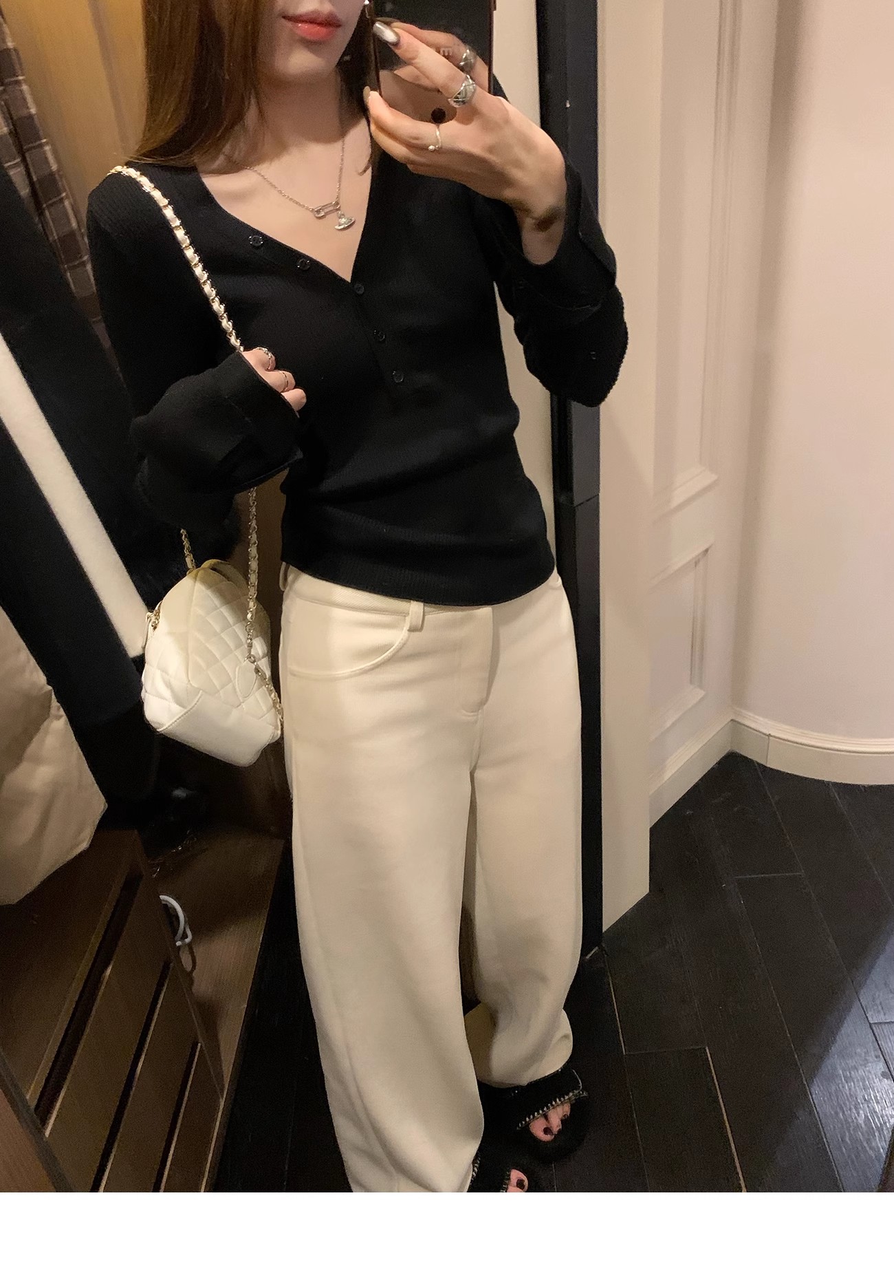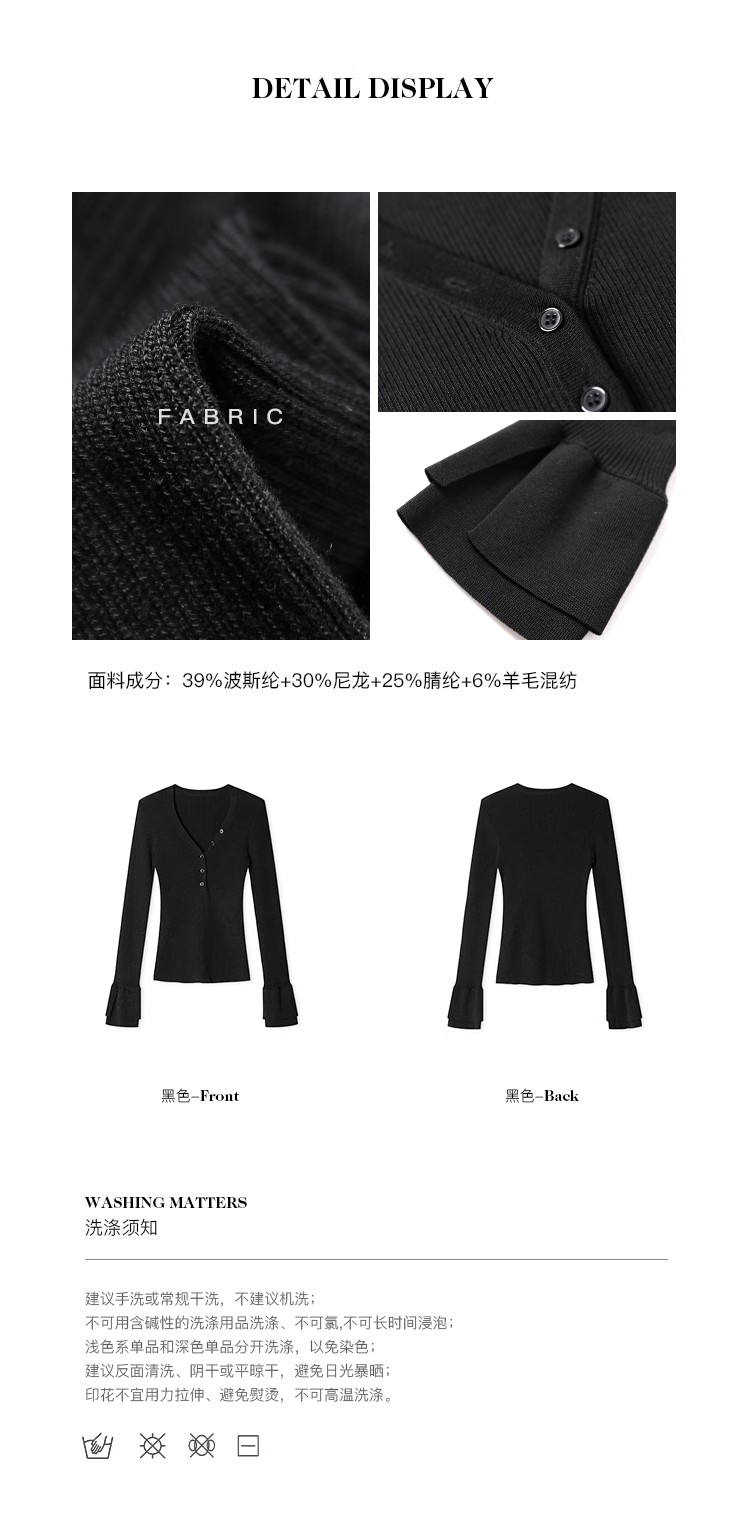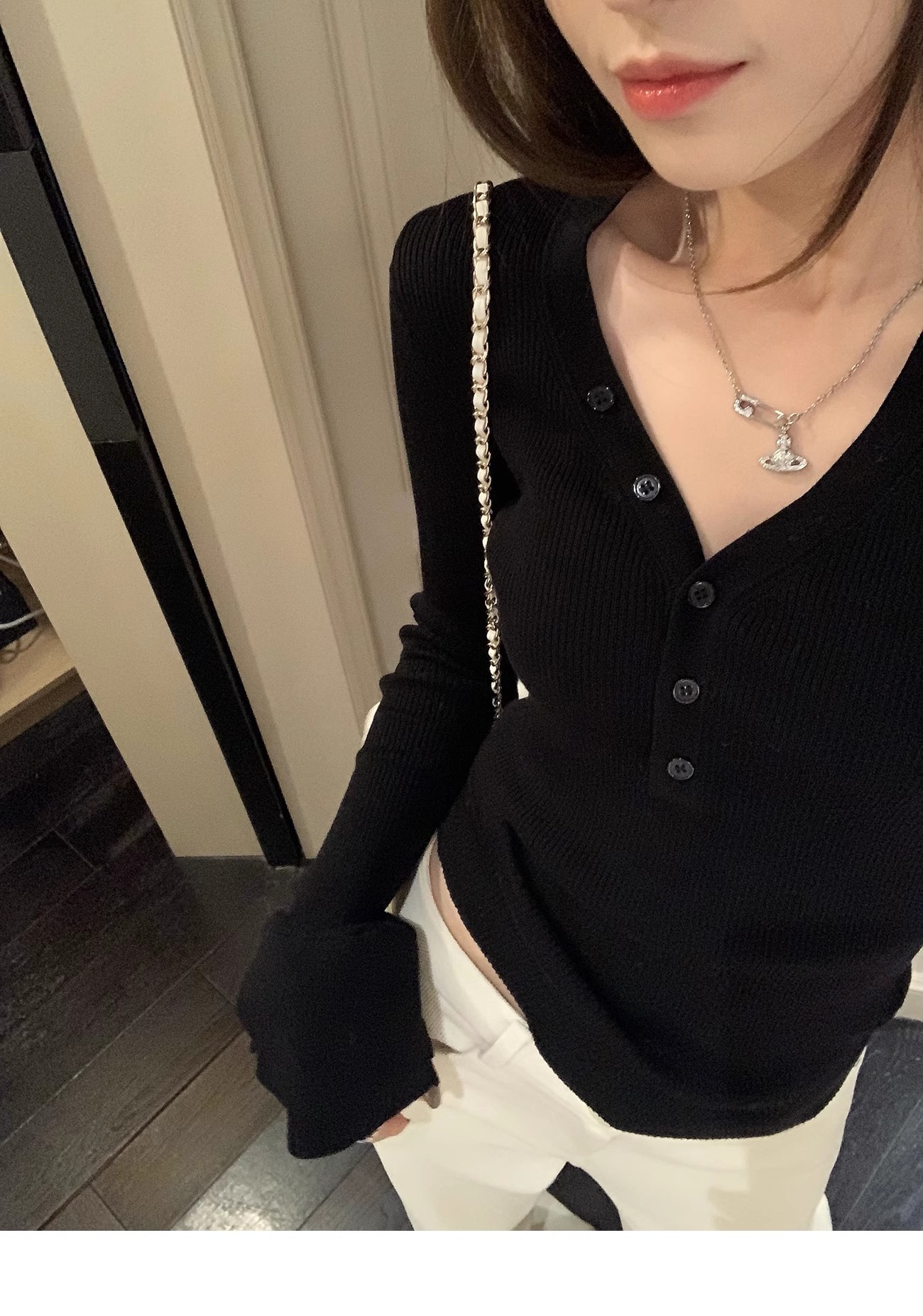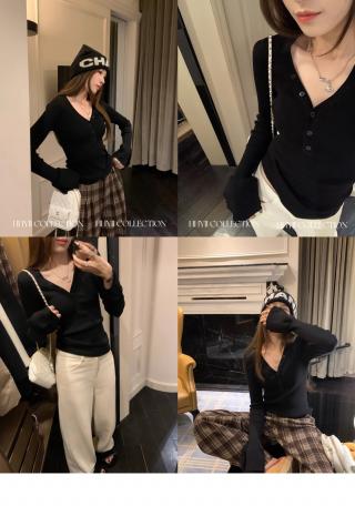 V领双袖口针织打底衫女秋冬韩版紧身长袖内搭上衣