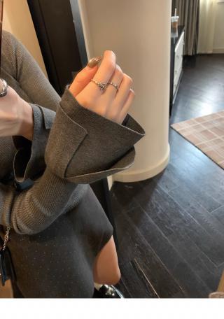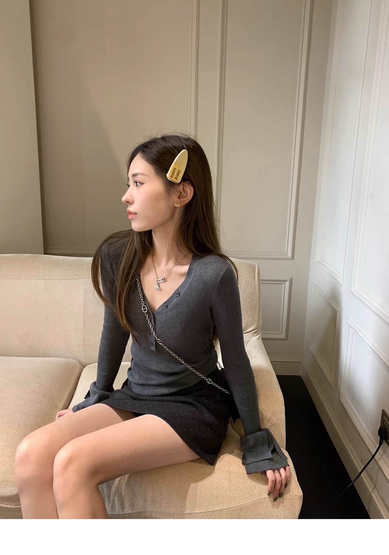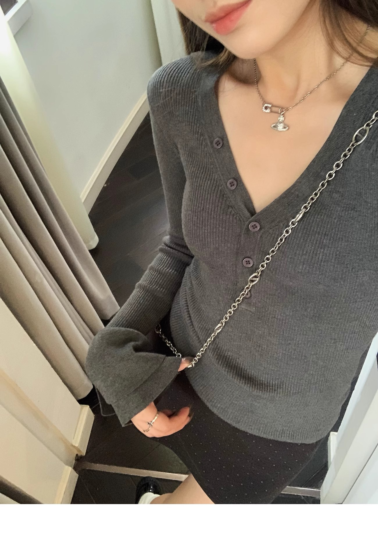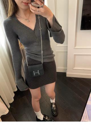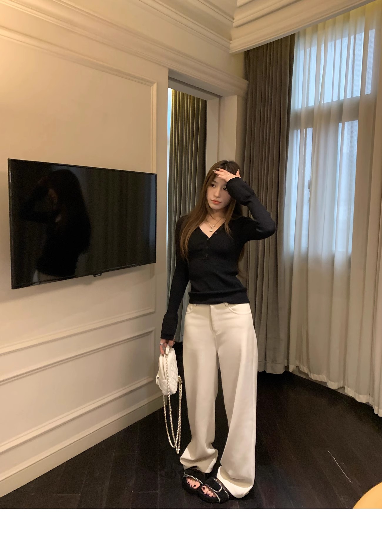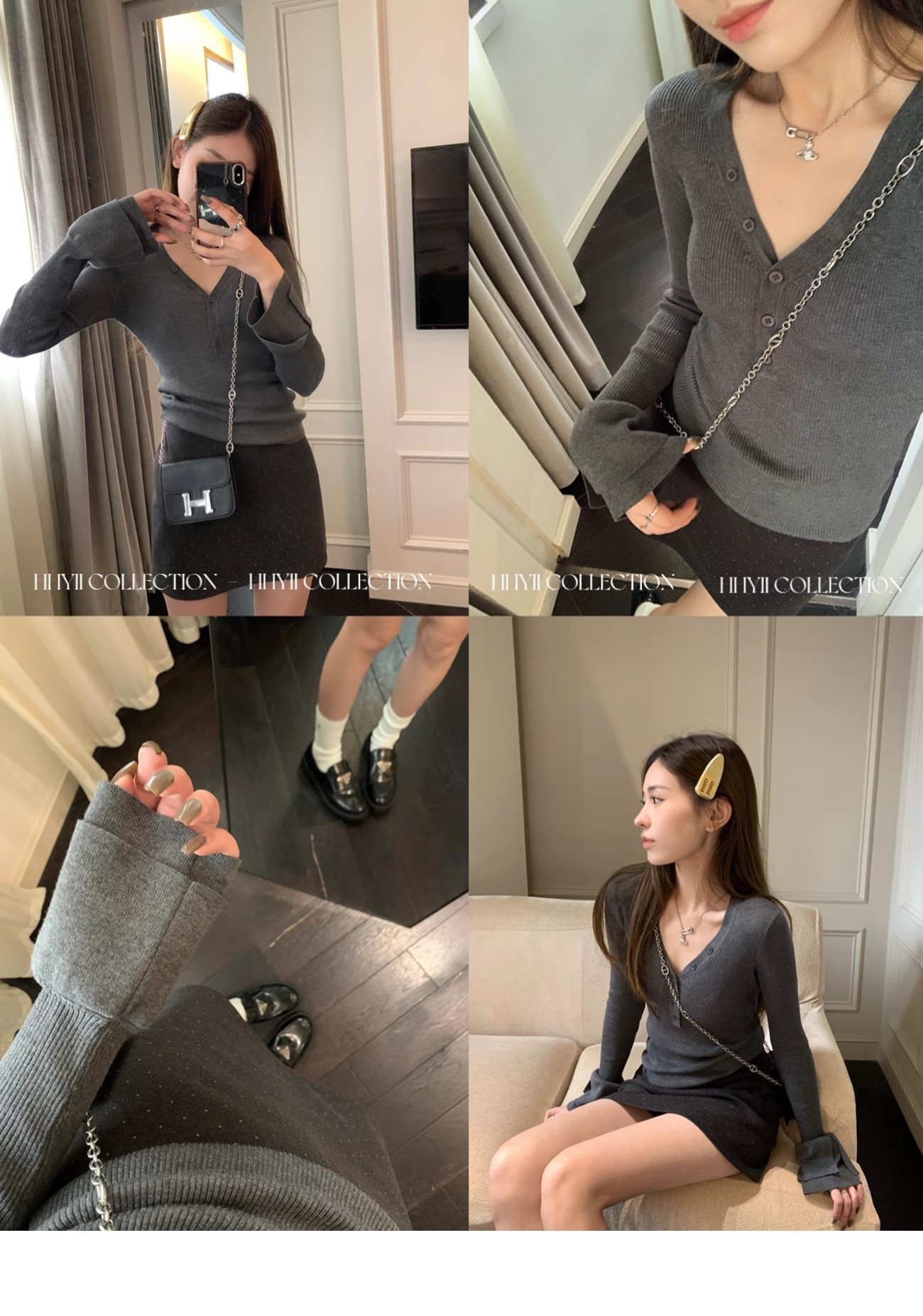 V领双袖口针织打底衫女秋冬韩版紧身长袖内搭上衣