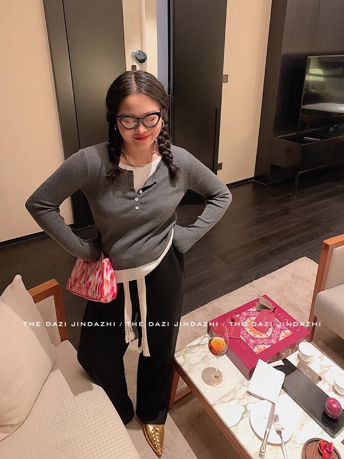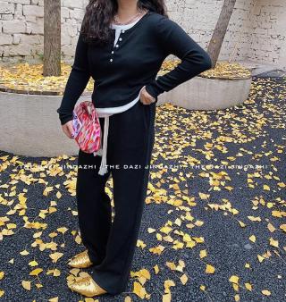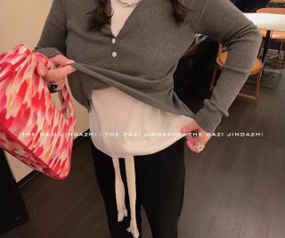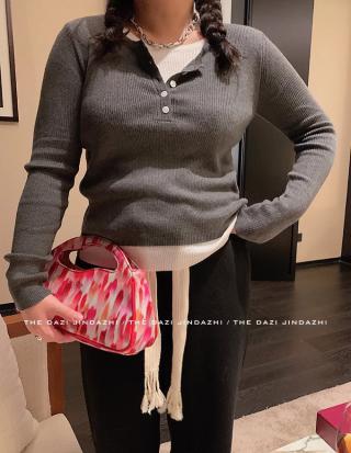 假两件套针织衫女秋冬季韩系温柔风修身显瘦打底衫上衣